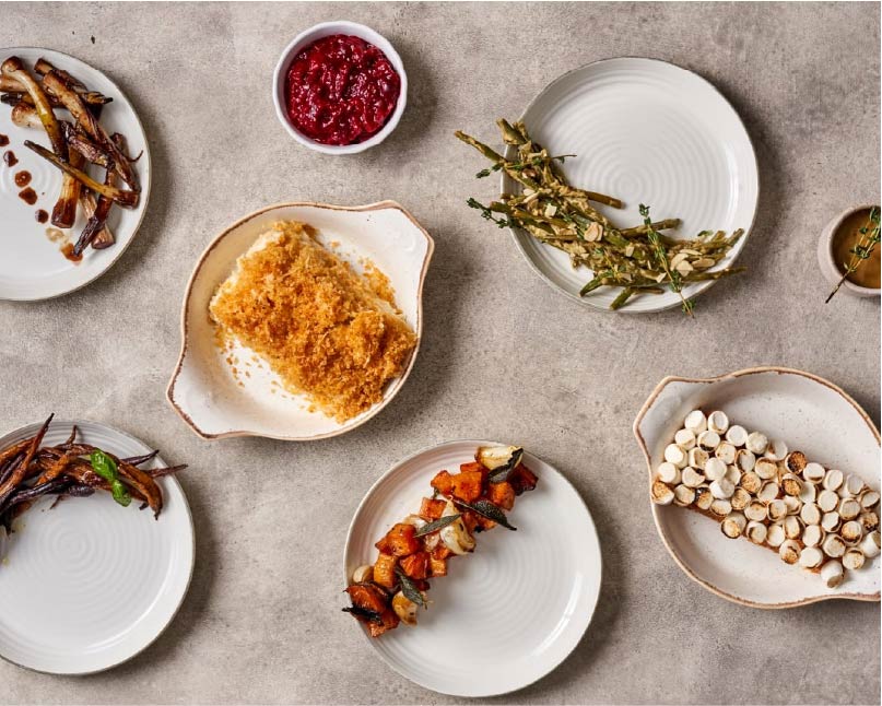 roasted leeks with crispy garlic and pistachio gremolata / french carrots with whipped honey and black garlic crumbs / roasted baby potatoes with herbs / sourdough stuffing with sage and chorizo / roasted butternut squash with sage / green beans with thyme / sweet potato / candied yams / signature mac and cheese (+aed 120) / truffle mac and cheese (+aed 120)