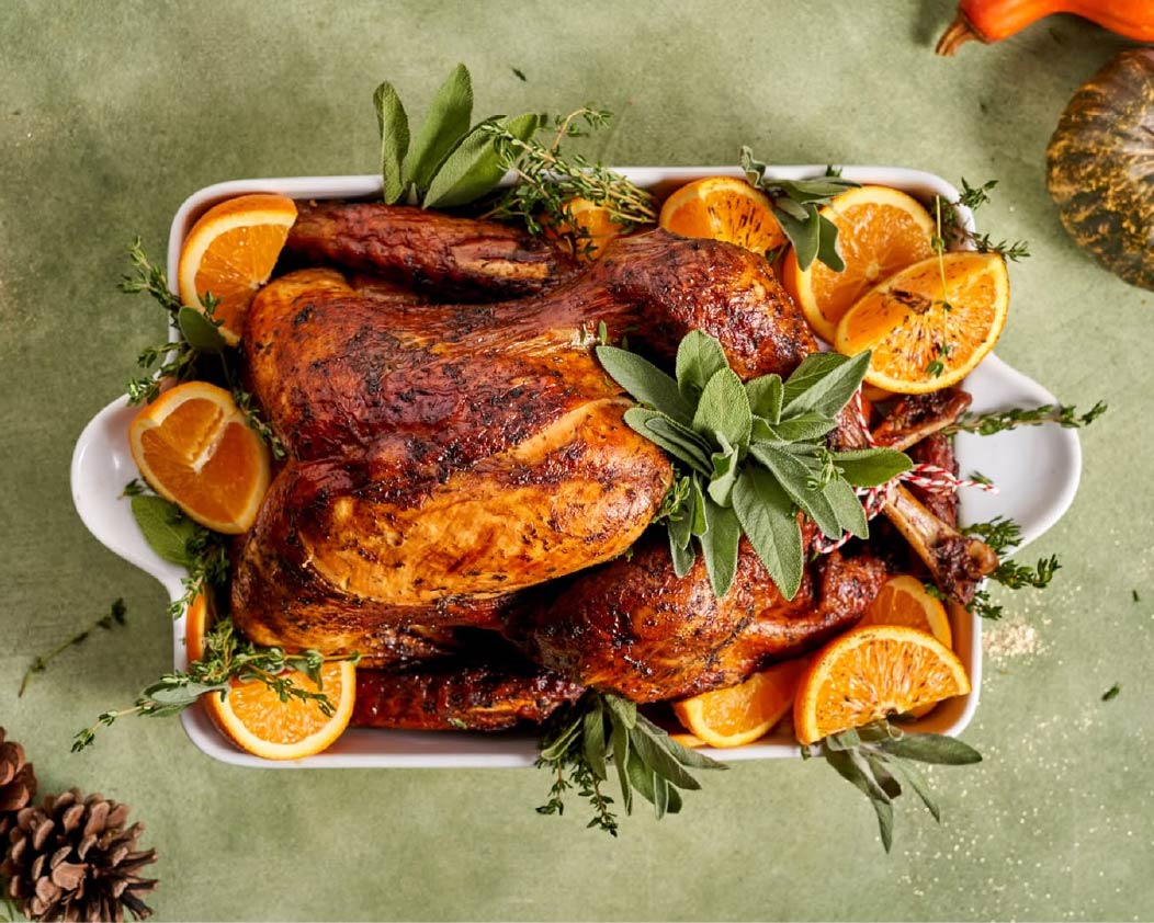 INCLUDING CRANBERRY SAUCE & YOUR CHOICE OF 3 SIDES / EXTRA SIDES (+90AED)